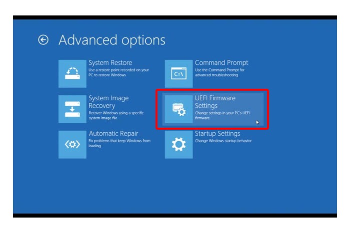 在高级选项菜单中,选择UEFI固件设置: