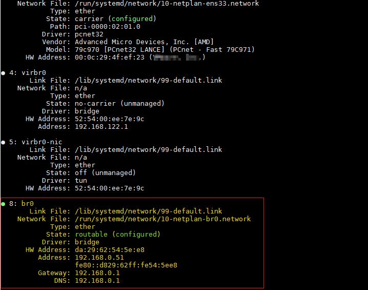 只有通过桥接网络,KVM 虚拟机才能访问外部的 KVM 管理程序或主机。在Ubuntu 18.04中,网络由 netplan 实用程序管理,每当我们新安装一个 Ubuntu 18.04 系统时,会自动创建一个名称为 /etc/netplan/50-cloud-init.yaml 文件,其配置了静态 IP 和桥接网络,netplan 实用工具将引用这个文件。