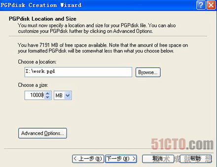 3.选择加密磁盘生成的路径(生成的加密磁盘以加密文件的形式存在),以及加密磁盘的大小,如下图: