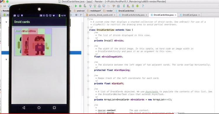 前面有提到过,对不可见的UI组件进行绘制更新会导致Overdraw。例如Nav Drawer从前置可见的Activity滑出之后,如果还继续绘制那些在Nav Drawer里面不可见的UI组件,这就导致了Overdraw。为了解决这个问题,Android系统会通过避免绘制那些完全不可见的组件来尽量减少Overdraw。那些Nav Drawer里面不可见的View就不会被执行浪费资源。