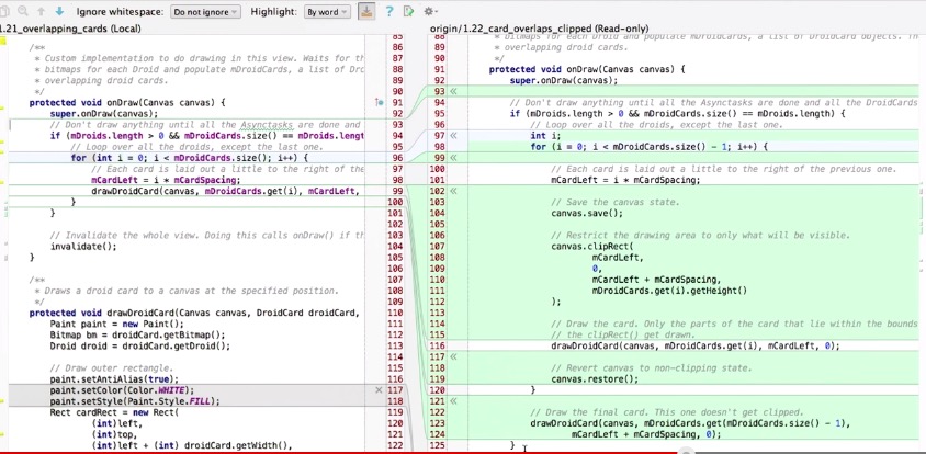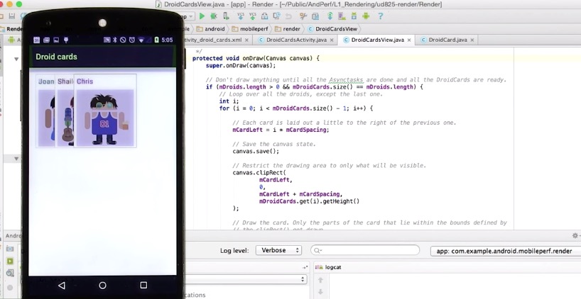 上面的示例图中显示了一个自定义的View,主要效果是呈现多张重叠的卡片。这个View的onDraw方法如下图所示: