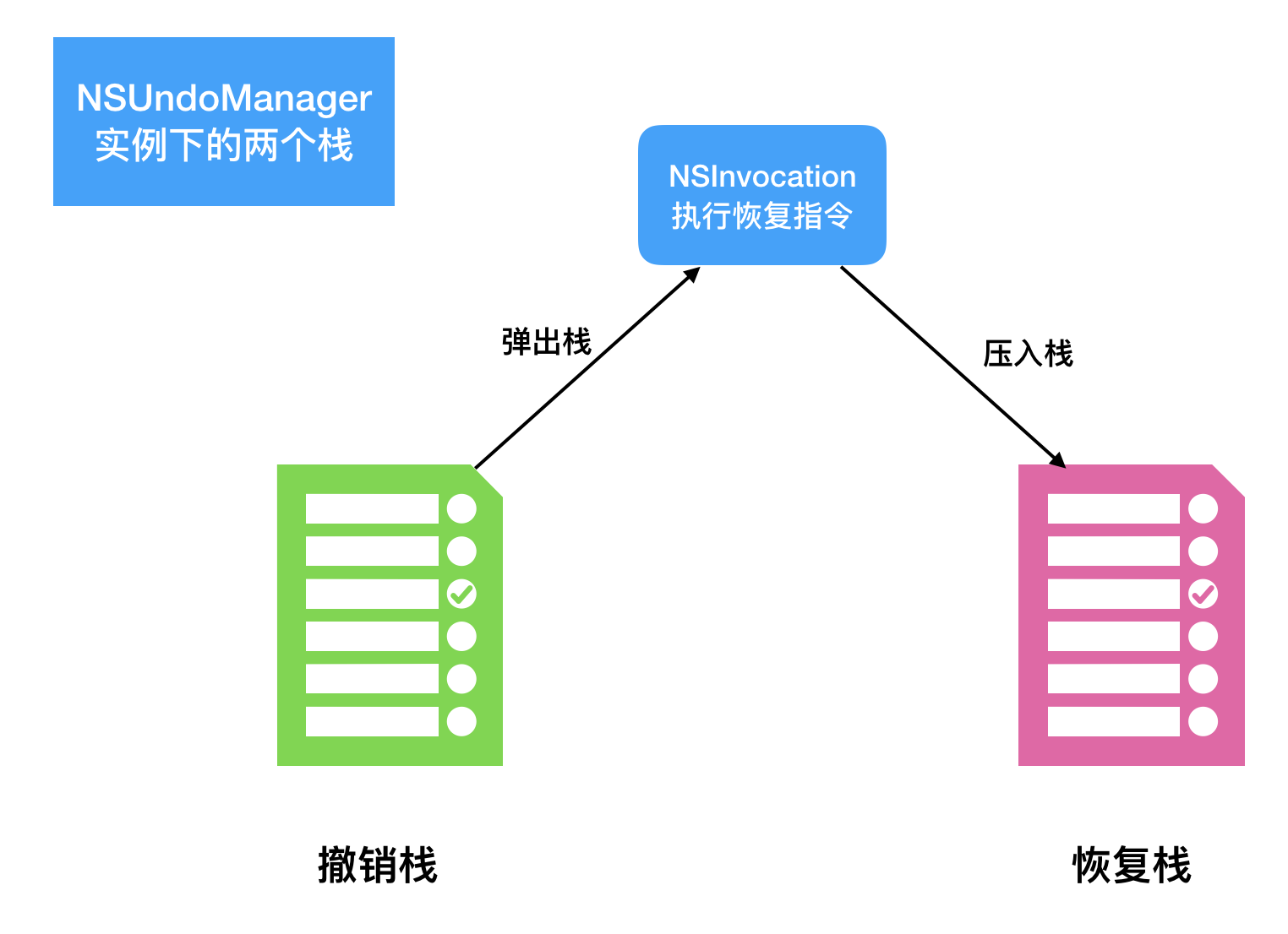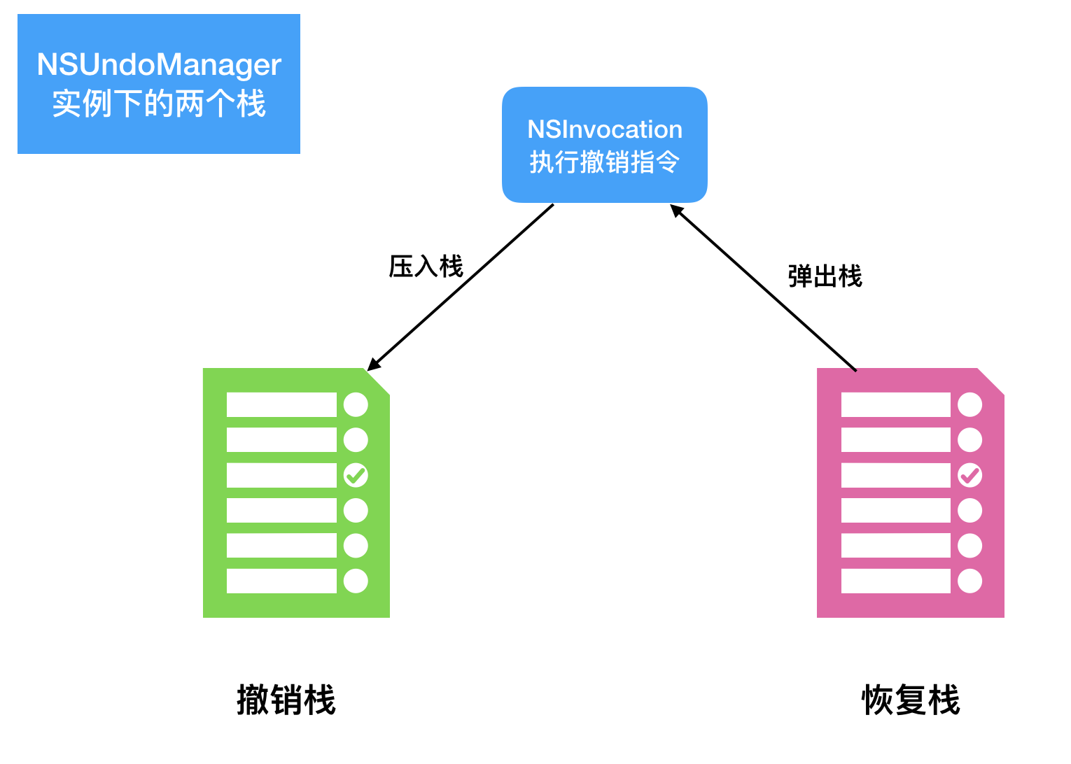 NSUndoManager是苹果提供的撤销恢复管理类,它里面主要有三个要素构成
