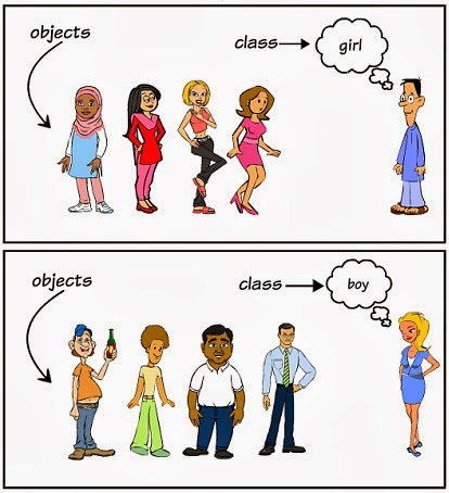 下图中男孩女孩为类,而具体的每个人为该类的对象:
