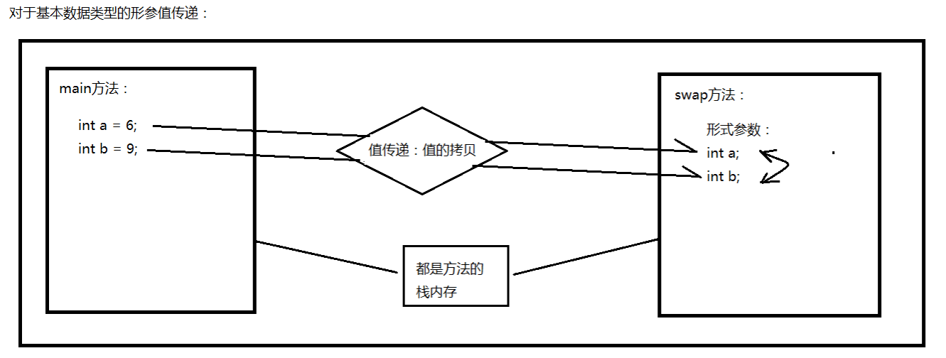 当调用方法时,如果传入的数值为基本数据类型(包含String类型),形式参数的改变对实际参数不影响