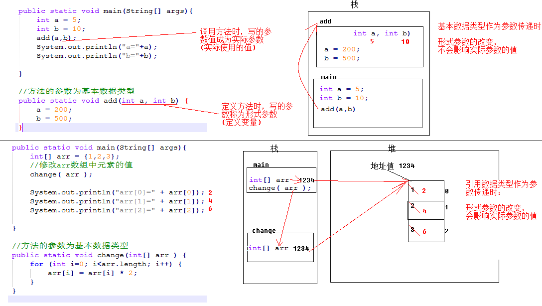 change(arr);// 调用方法时,传入的数值称为实际参数
