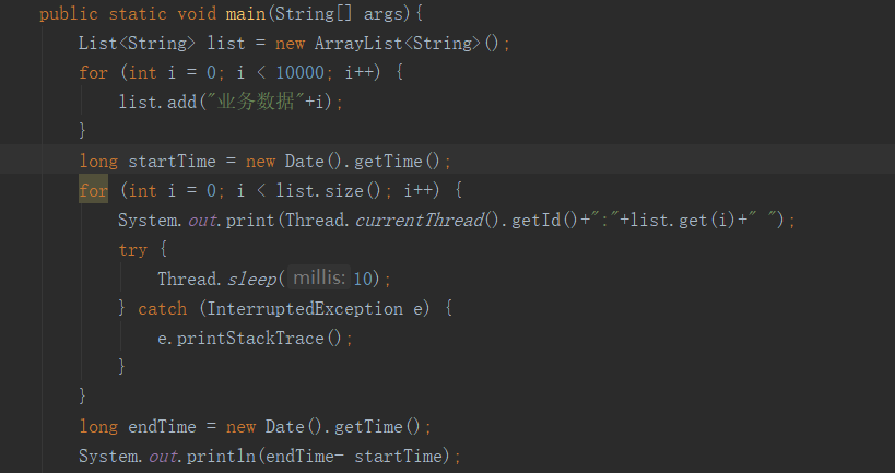 处理10000条数据,每次业务处理假设消耗10ms,总用时107857ms