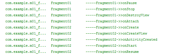 我们就其中的fragment01和fragment02来讨论一下他们的生命周期的变化: