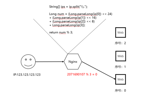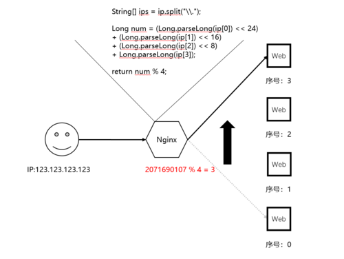 以nginx中的ip_hash策略来举个例子。因为我们认为正常情况下用户的ip不会在短时间内发生变化,所以当我们选择使用ip_hash策略进行负载均衡时,意味着期望同一个用户能够一直访问到同一台服务器上,就像下图这样。