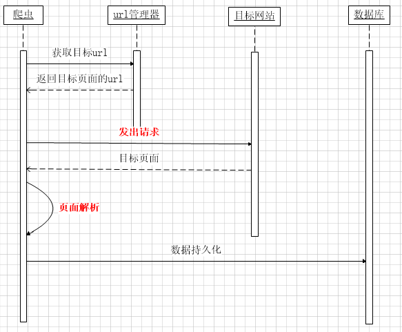 从上图我们可以了解到,爬虫的运行,主要分为四个过程: