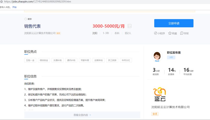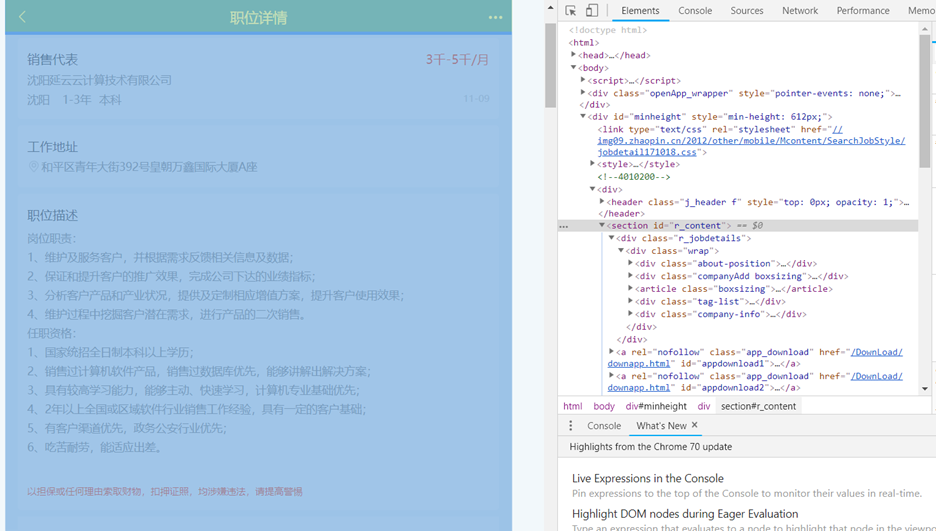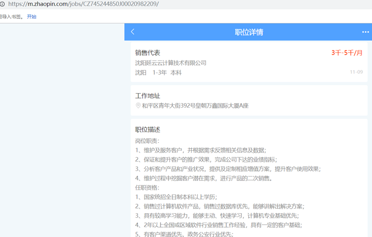 在<meta>中找到'mobile-agent',提取后面的url——'url=//m.zhaopin.com/jobs/CZ745244850J00020982209/',打开: