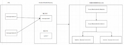 按照如上的定义,url -> handler(/message/state/* -> CommonsStateController )形式已经出来了,但是还缺少父类路径 /message/state/ 以及 如何让RequestMappingHandlerMapping识别CommonsStateController这个handler 中的所有子handler。