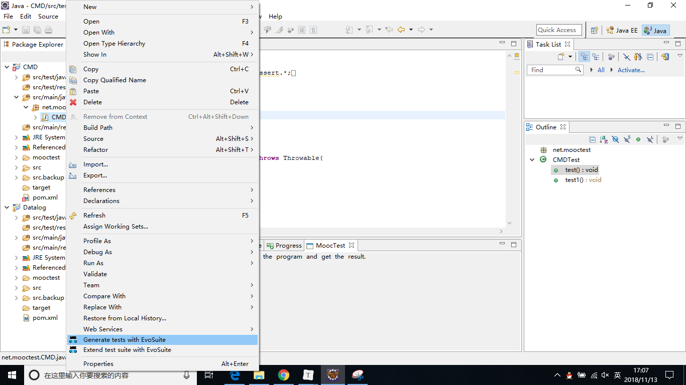 evosuite执行对象是字节码文件,所以需要将待测的Java文件编译成.class的字节码文件