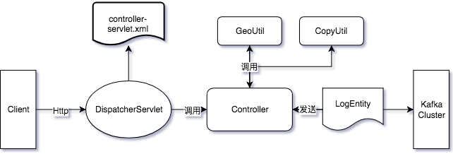 Logs_Collect_Web是基于SpringMVC的Web应用,目标是收集各客户端的日志数据,组件结构为