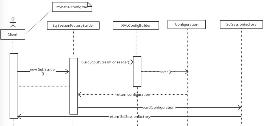 SqlSessionFactoryBuilder根据Configuration对象创建一个DefaultSessionFactory对象,并返回给客户端。