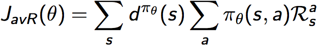 其中d为利用对应策略生成的马尔可夫链的稳态分布。1)中为从某个状态开始,看一下后面将得到的奖励;2)中为continuing环境,所以并没有一个所谓的初始状态