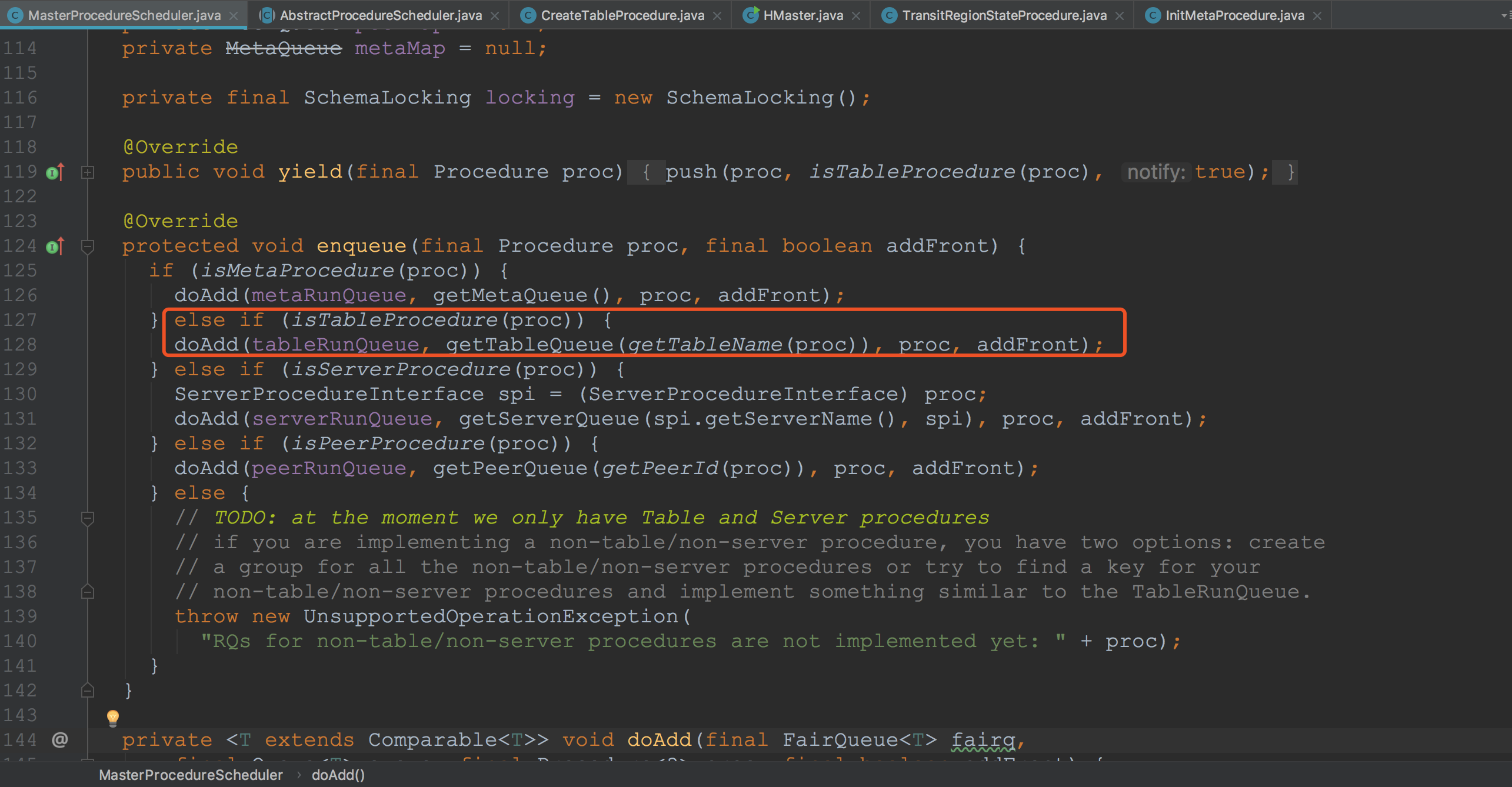 因此,会将该procedure加入任务队列tableRunQueue中。