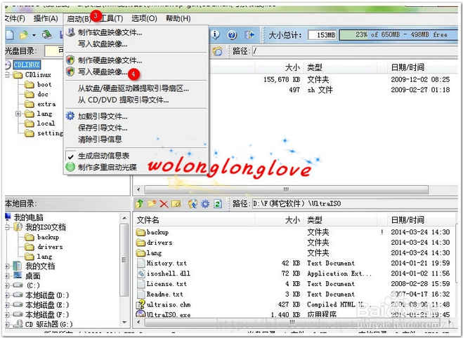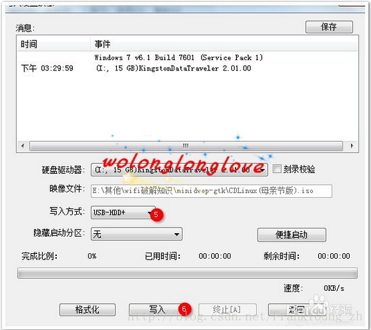 二、把ISO改名为CDlinux.iso,然后用UltraISO把iso写入硬盘,模式为usb hdd+(为了操作简便,这几张图就直接引用自网络),