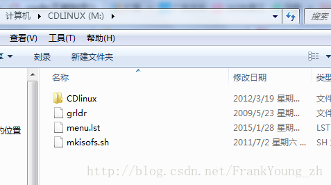 三、这时候U盘根盘符是大写CDLINUX,里面一个文件夹和一个文件,
