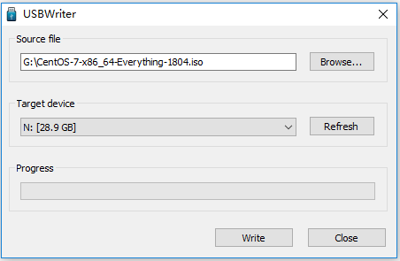 利用USBWriter软件制作CentOS装机系统盘,如下图: