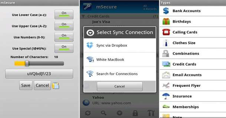 就像其他流行的密码管理器解决方案,Android 下的 mSecure 密码管理器自动生成安全密码,并使用 256 位Blowfish 加密技术存储它们。