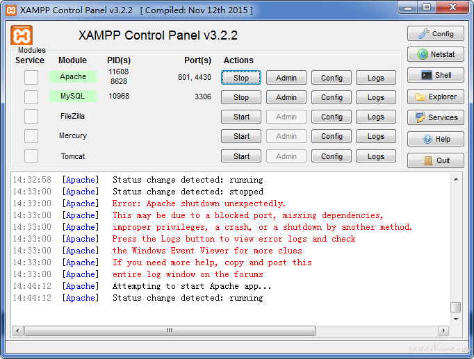 问题1:安装Apache时,提示端口被占用,提示错误如下图
