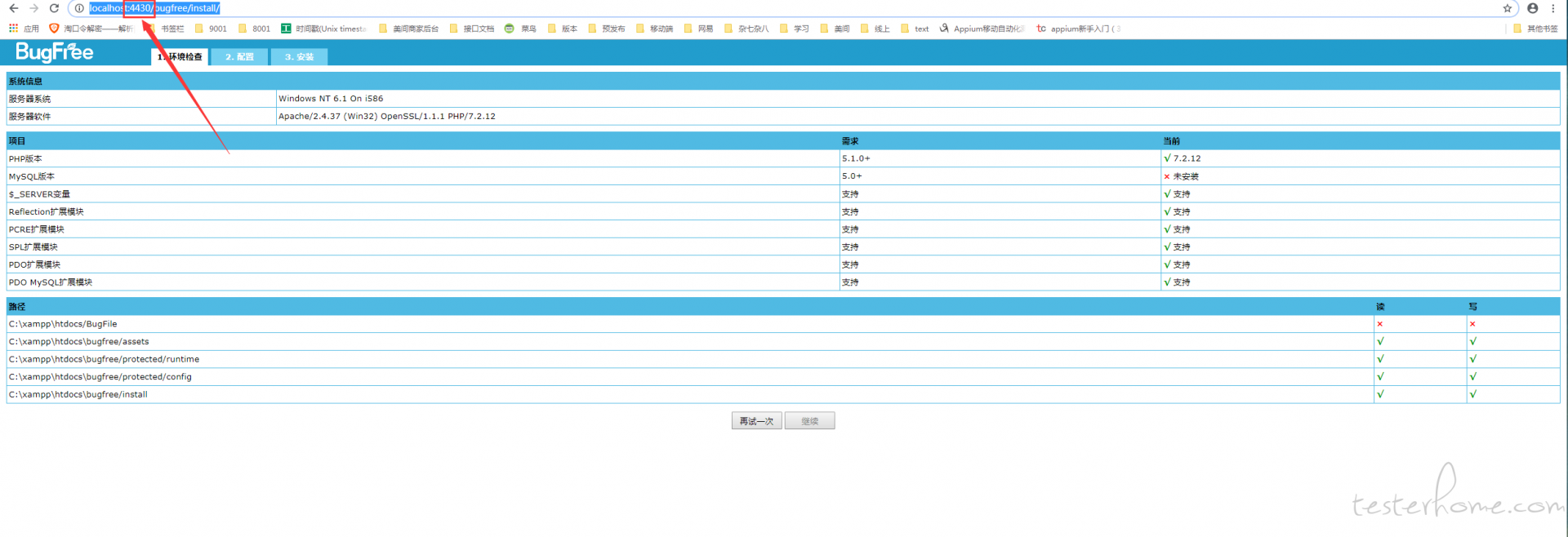问题1:http://localhost/bugfree/install/ 打开网址显示