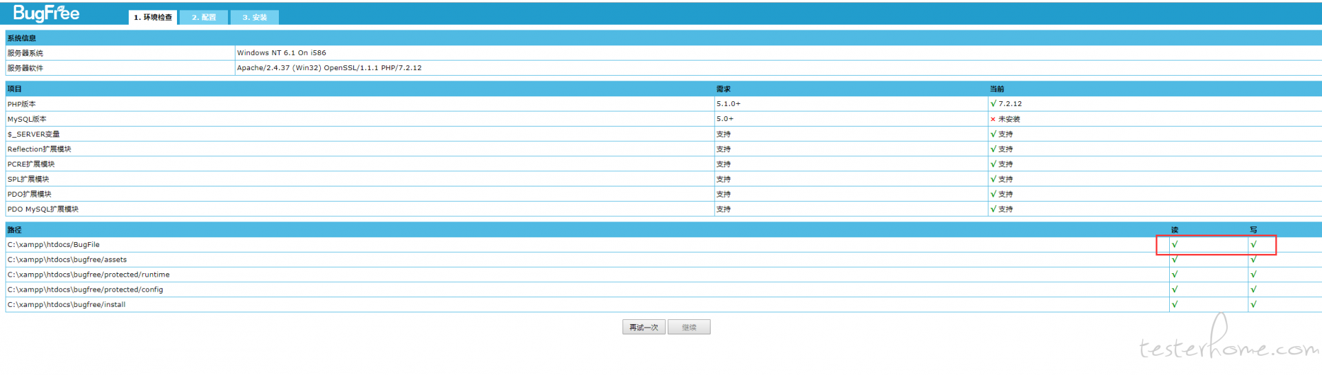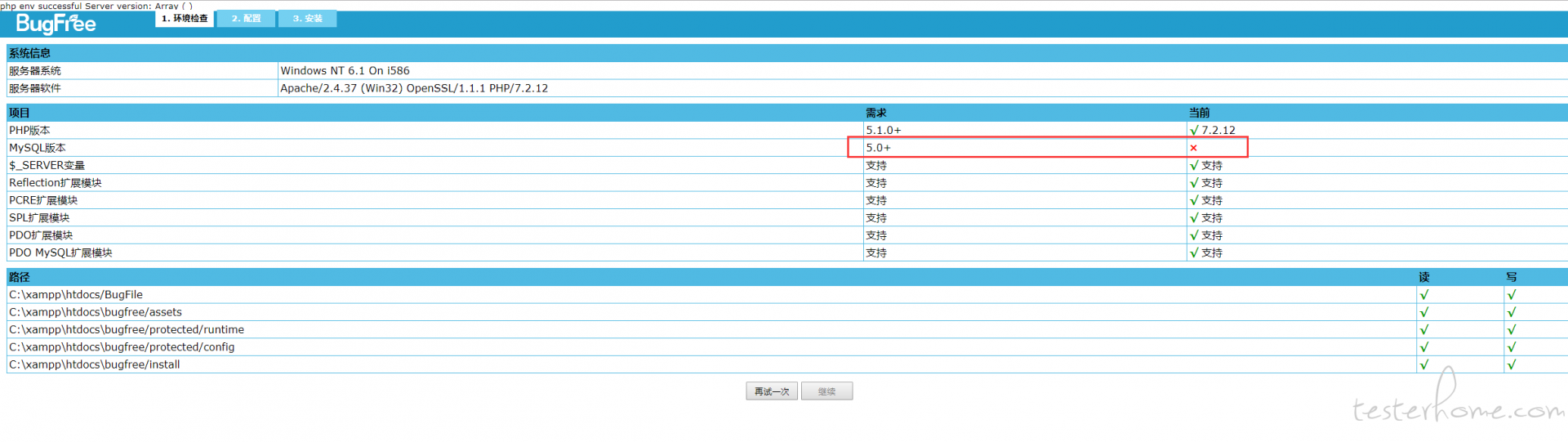 记第一次安装bugfree过程,几经曲折,倒在了BUGfree 环境检查的MySQL未安装的地方,求助