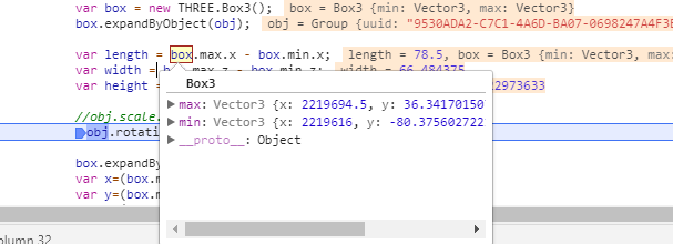 box.expandByObject(obj);var x = (box.max.x + box.min.x) / 2;var y = (box.max.y + box.min.y) / 2;var z = (box.max.z + box.min.z) / 2;