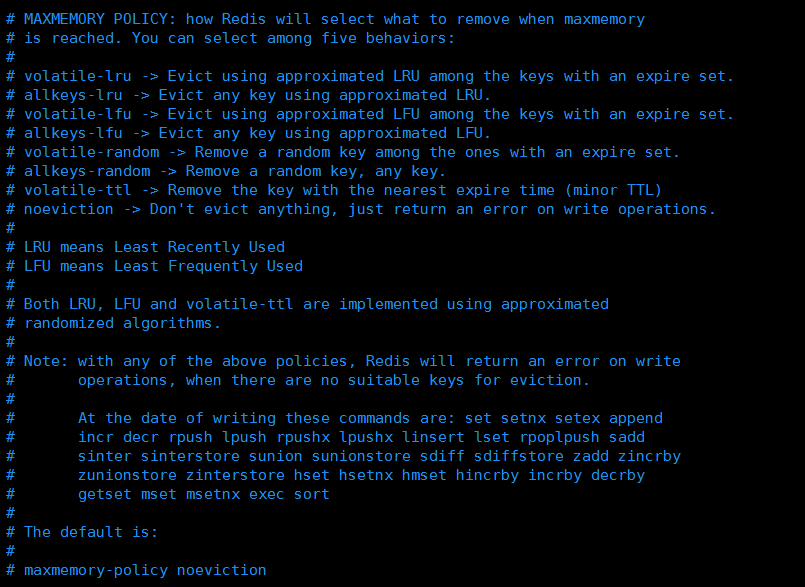8.noeviction 不删除键,返回错误信息(redis默认选项)