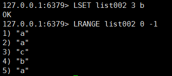 接口描述:将对应key的列表元素中位于index下标位置的数据赋值为value(如果下标越界,会抛出异常)。