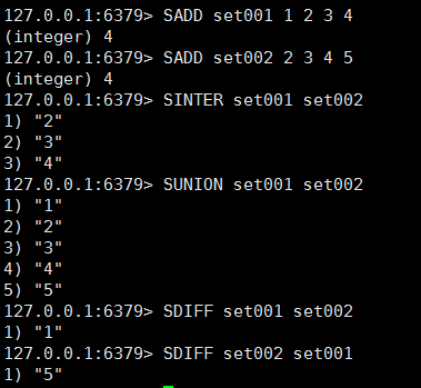 set类型的常用命令还有诸如SINTERSTORE,SUNIONSTORE,SDIFFSTORE(取得交集、并集、差集的结果,同时保存为另一个集合),SRANDERMEMBER(从集合中随机获得元素),SPOP(从集合中随机弹出元素)等等。
