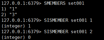 接口描述:判断member是否存在于key对应的集合元素中,如果存在返回 1,如不存在返回 0。
