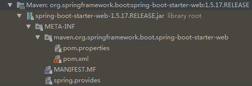 脑中大概有个印象:我们要用一个场景(比如web),直接导入下图所示的依赖,但是在jar包里面去看这个,你会发现里面只有一些基本的配置文件,什么类都没有,就能够想到这个一类就类似一个公司前台的作用,通过这个公司前台,能够联系到公司内部。