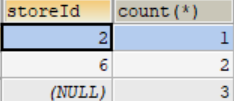 SELECT storeId,COUNT(*) FROM product GROUP BY storeId WITH ROLLUP; #对storeId进行分组,并显示其数量