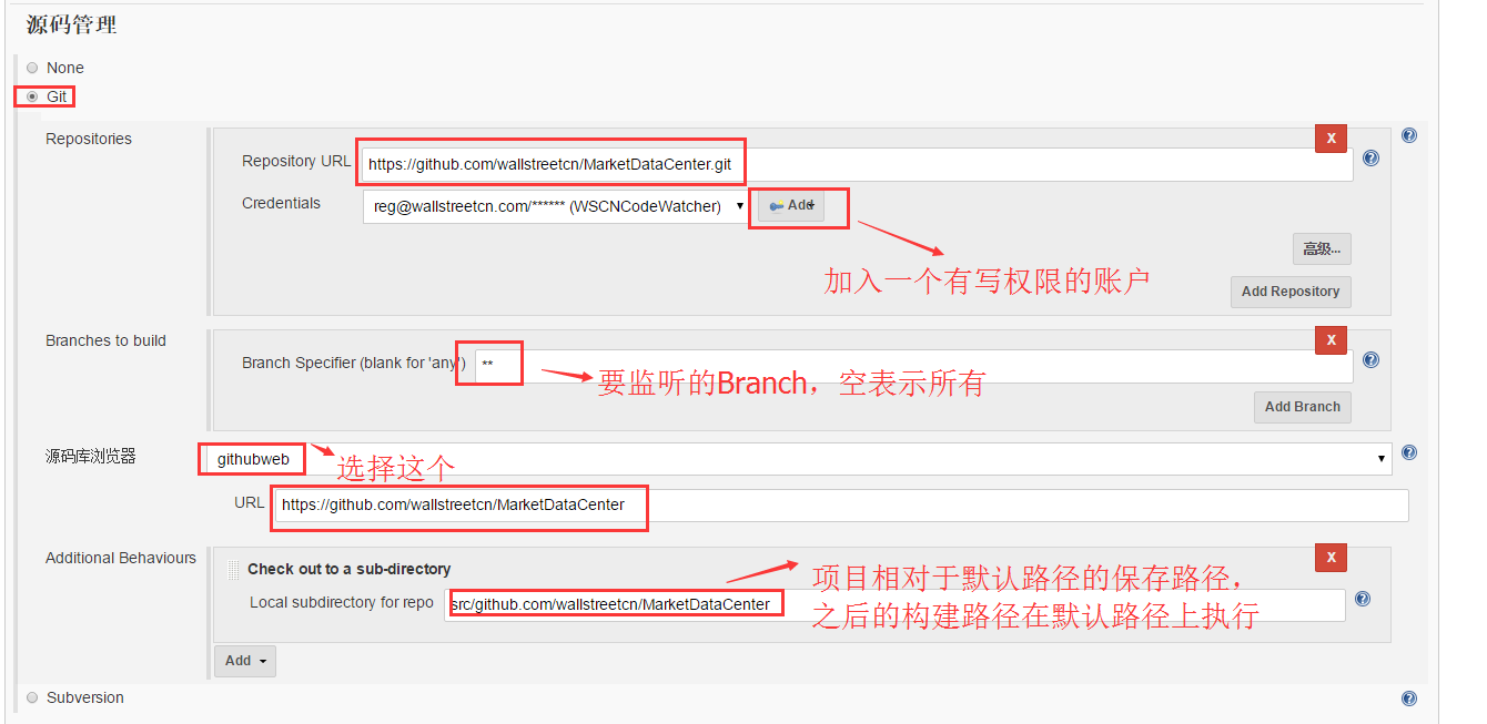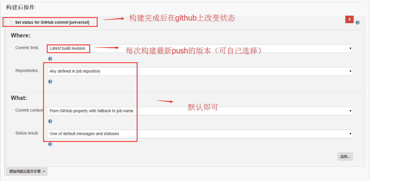 选择githubweb源码库浏览器,并填上你的项目URL,这样每次构建都会生成对应的changes,可直接链到github上看变更详情
