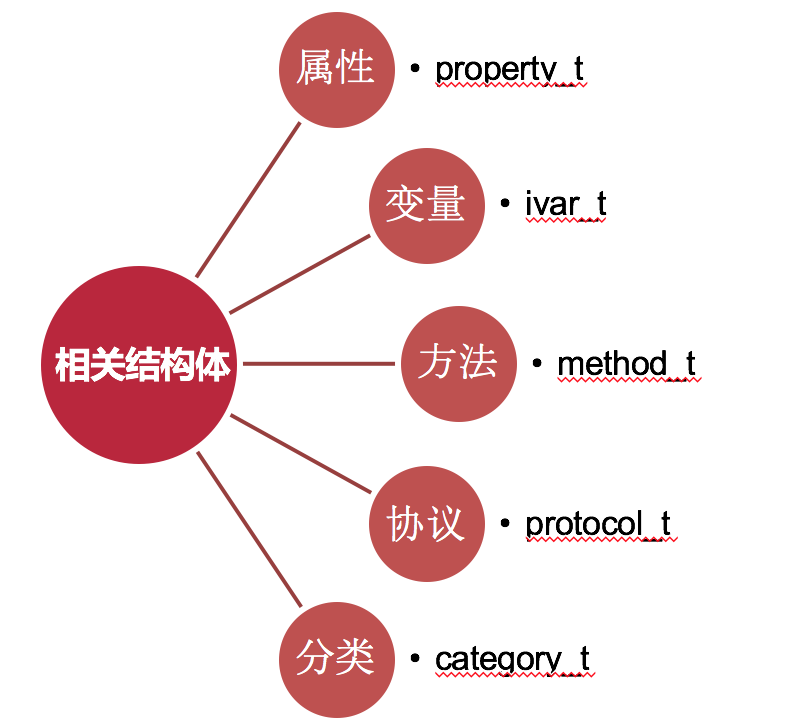 - 首先苹果设计了这些结构体来帮助实现类的相关功能: