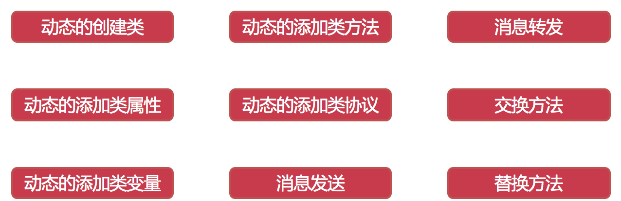 - 实际开发中很多看起来炫酷的功能都来自它的运行时特性,这里我总结了一些比较重要的功能:
