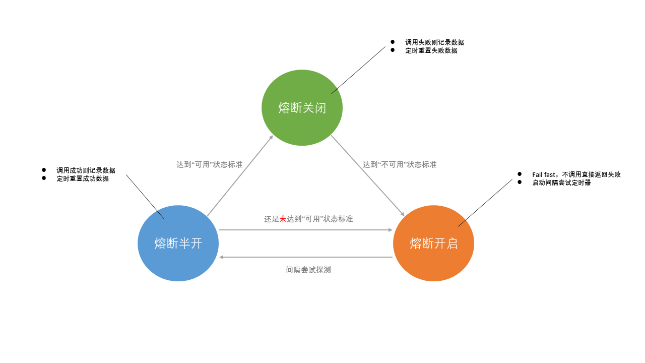但是你可以想象一个稍微极端一点的场景,如果系统流量不是很稳定,导致频繁触发熔断的话,是不是意味着系统一直熔断的三种状态中不断切换。