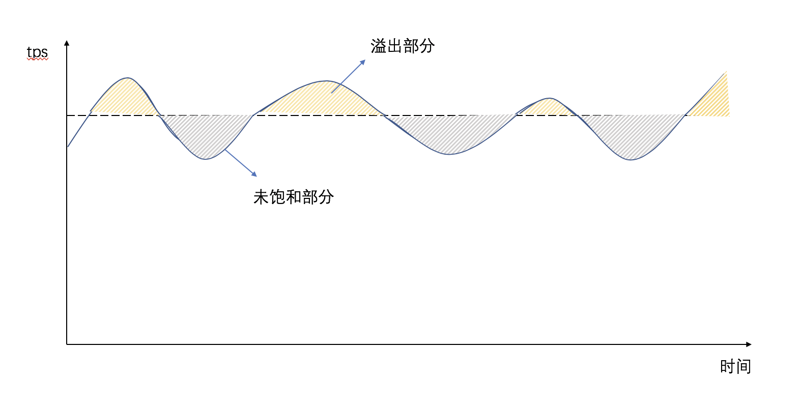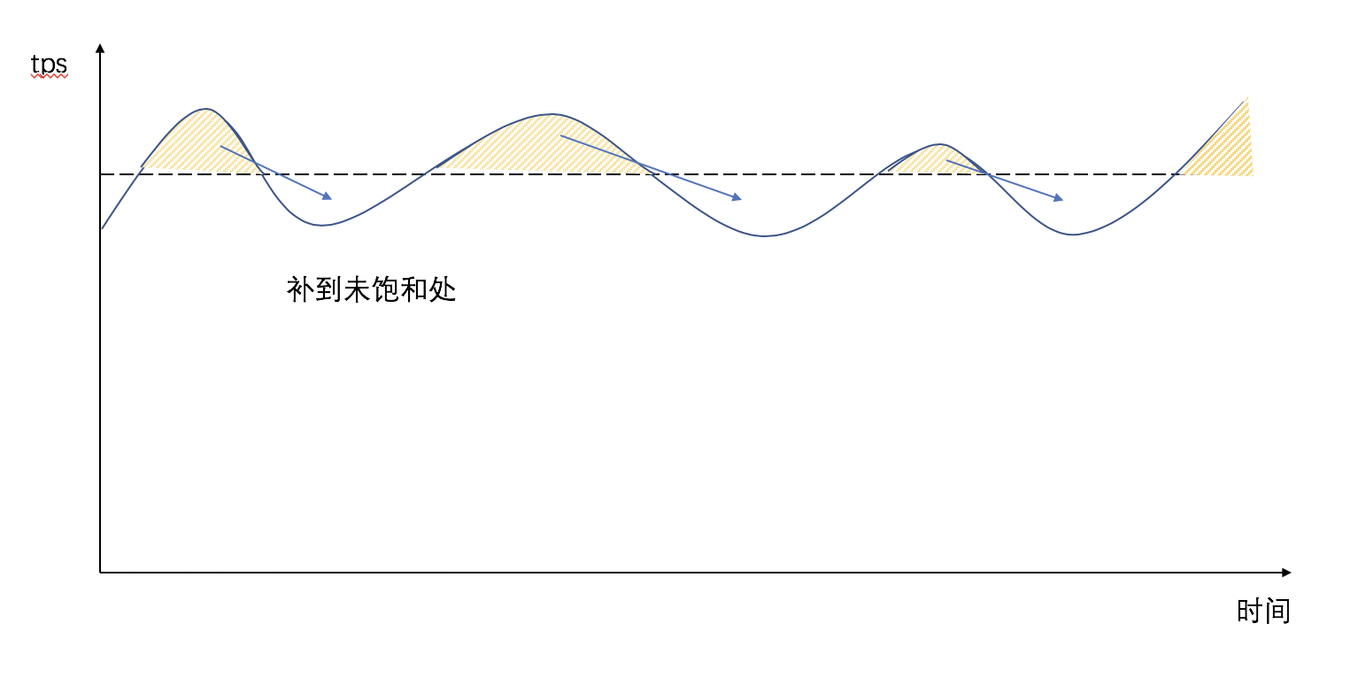在高压下,只要系统没宕机,如果能将接收的流量持续保持在高位,但又不超过系统所能承载的上限,会是更有效率的运作模式,因为会将这里的波谷填满。