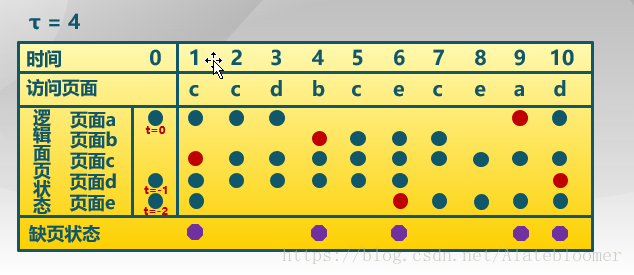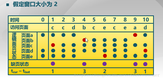 当前时刻前τ个内存访问的页引用是工作集,τ被称为窗口大小