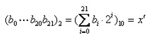 二进制串<0000000000000000000000>和<1111111111111111111111>则分别表示区间的两个端点值-1和2。