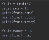 接下来我们实例化fruit,并为num赋值为10,即要买十个苹果,那么我们想获得需要付多少钱的时候,只要通过调用get_money就可以了。但是奇怪的是,我为什么可以通过直接用fruit.money就可以获得实际的付款金额呢?先别急,接下来慢慢解释。我先往下讲。