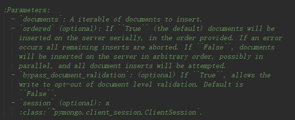 那么为什么pymongo的原生方法insert_many()有这么高的效率呢?如何能更进一步提高效率呢?通过阅读源码和分析参数,来了解一下。