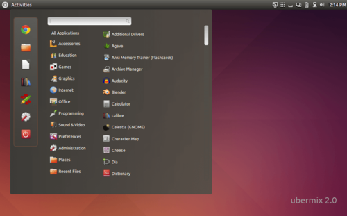 Ubermix 基于 Ubuntu 构建,同样以教学为目的。默认配备了超过60款应用,帮助学生更好地学习,同时给教师教学提供便利。