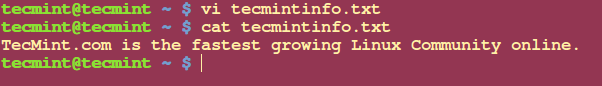# vi tecmintinfo.txt# cat tecmintinfo.txt