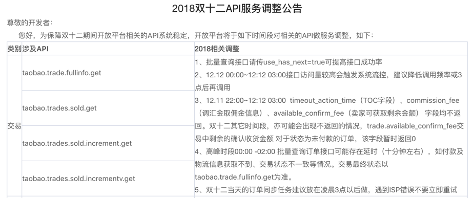 不知道这里有多少小伙伴接触过阿里的开放平台。在每次大促的时候,阿里都会发布这样的一个公告。