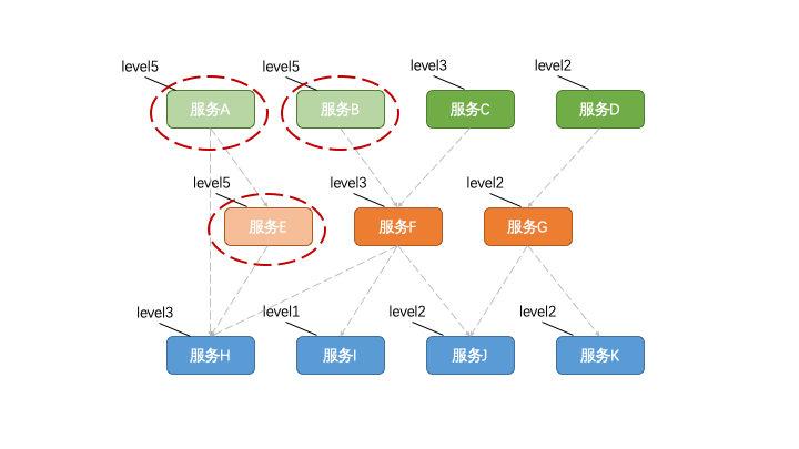 一旦当系统压力过大的时候,先把级别5的功能降级掉。如果还不够再降级别4、级别3,以此类推。