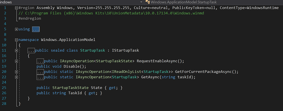 StarupTask位于Windows.wimd(Windows元数据文件)中的命名空间Windows.ApplicationModel。
