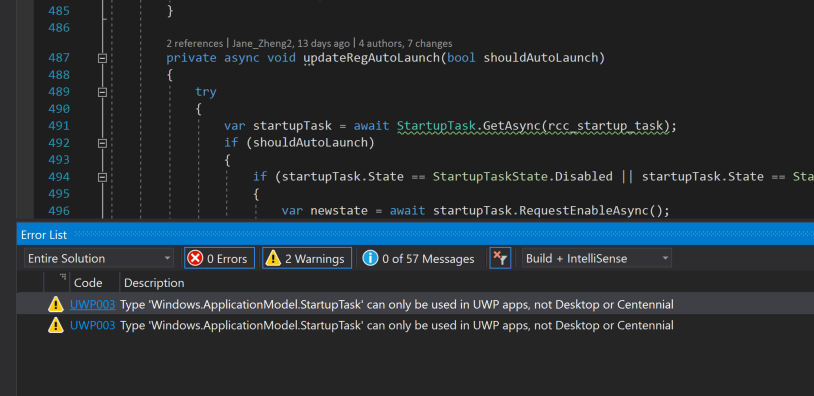 完成添加引用的操作后,就可以在AutoLaunchApp工程中使用StartupTask类了。