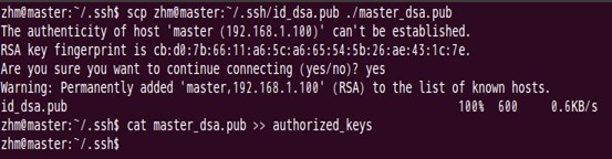 对master自身进行ssh免密码登录测试工作: